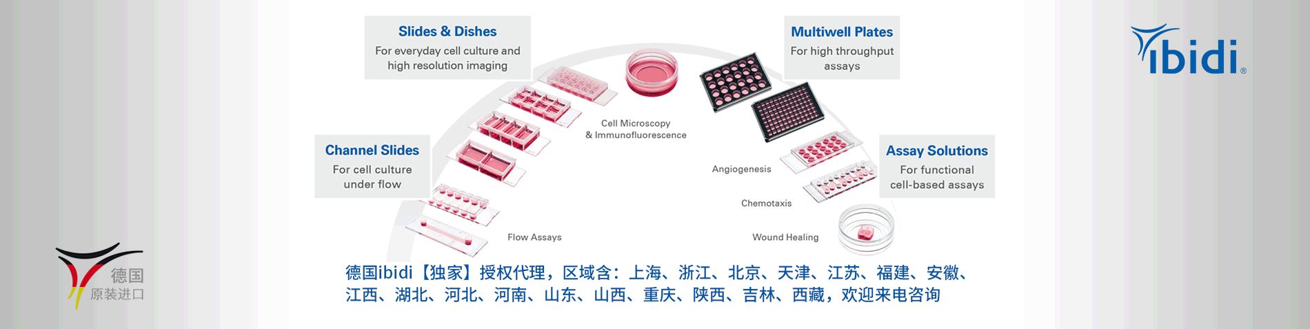 ibidi在細胞顯微成像領域做出了重大突破,創新細胞鏡檢解決方案。公司產品囊括范圍較廣,即可實現傳統細胞培養,也可完成復雜的細胞實驗(包括血管生成、細胞趨化、傷口愈合及細胞灌流等實驗)。